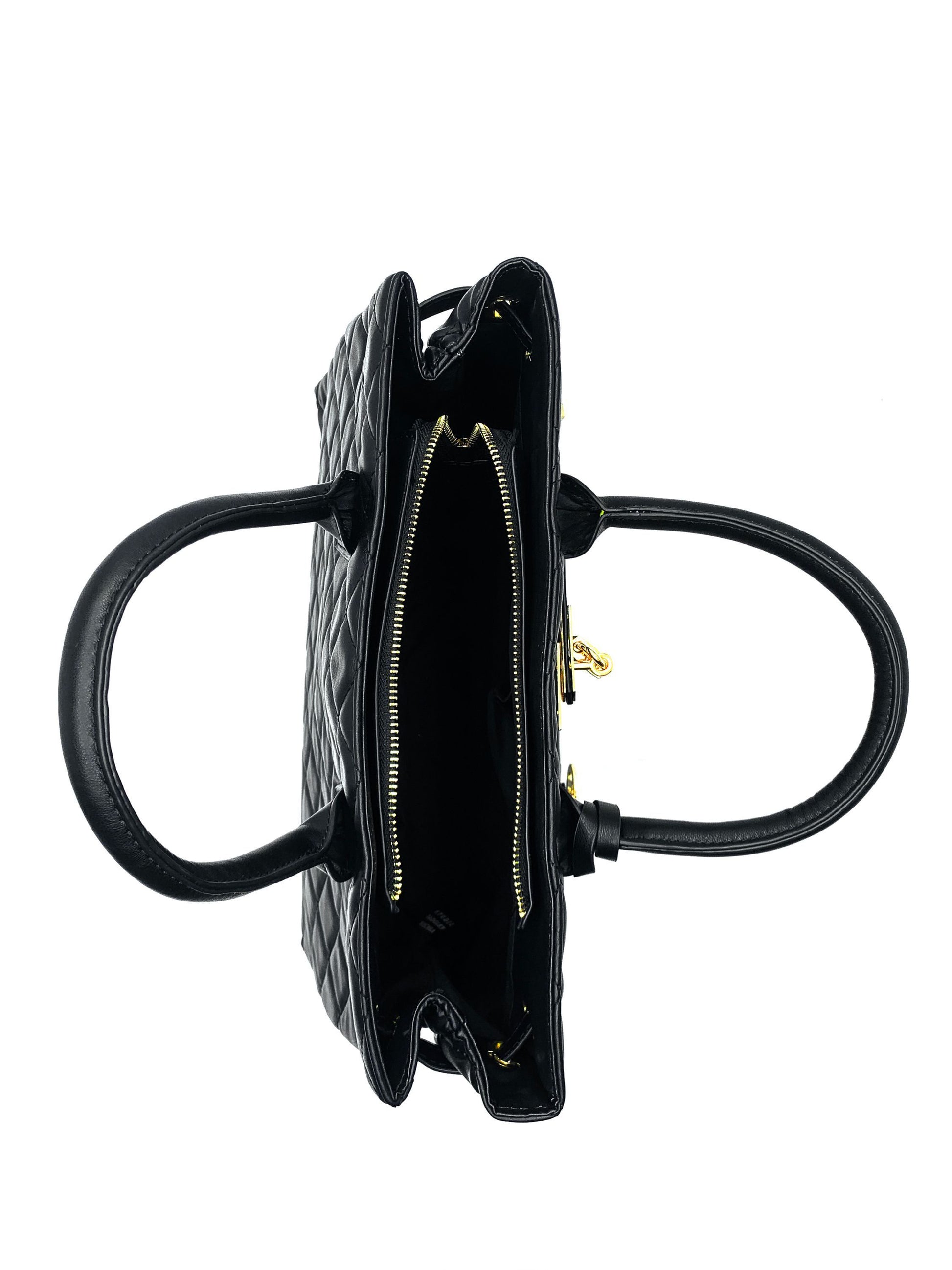 Badgley Mischka Black Middle Diamond Quilted Tote with Front Lock
