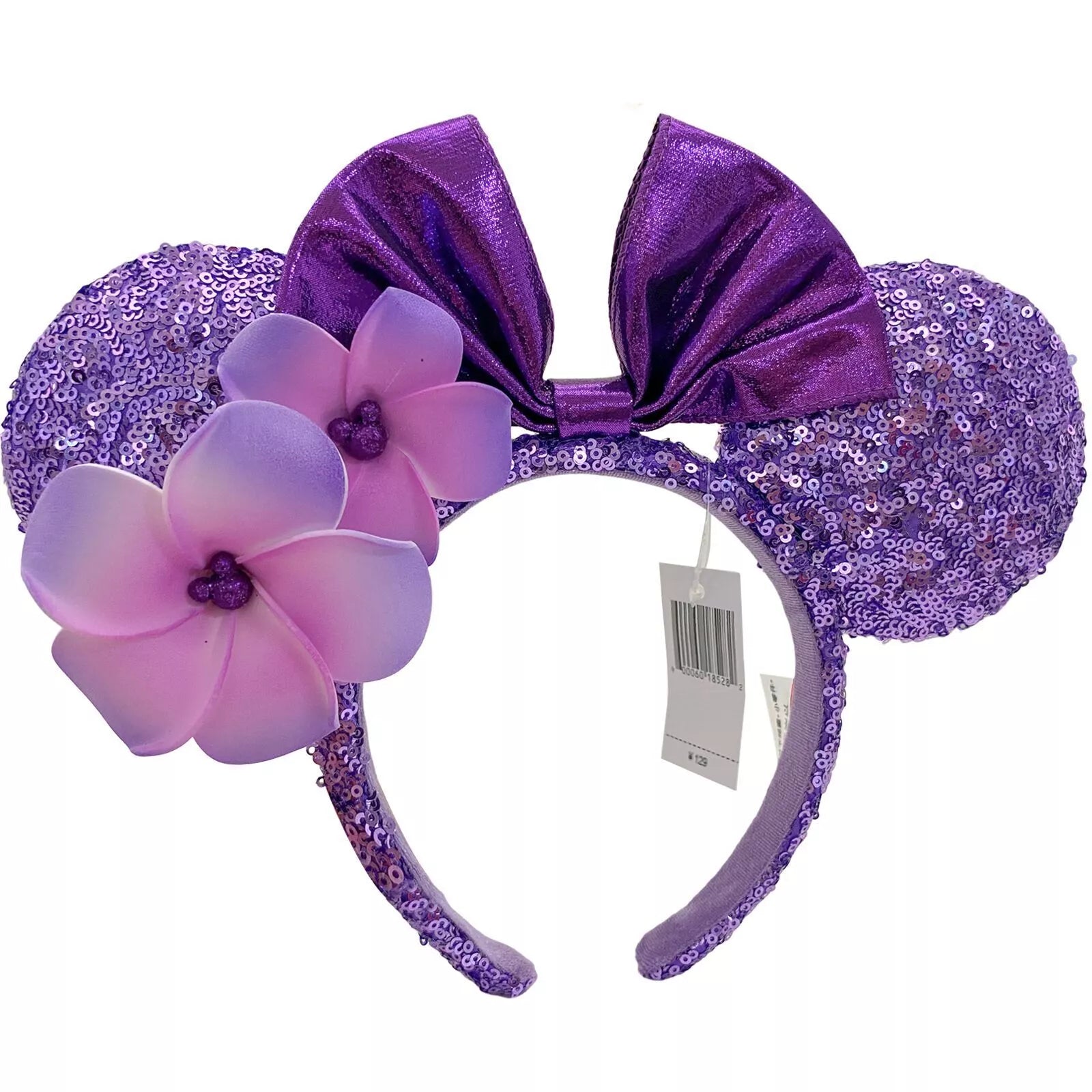 Disney Purple Minnie Plumeria Aulani Hawaii Mickey Mouse Sequins Ears