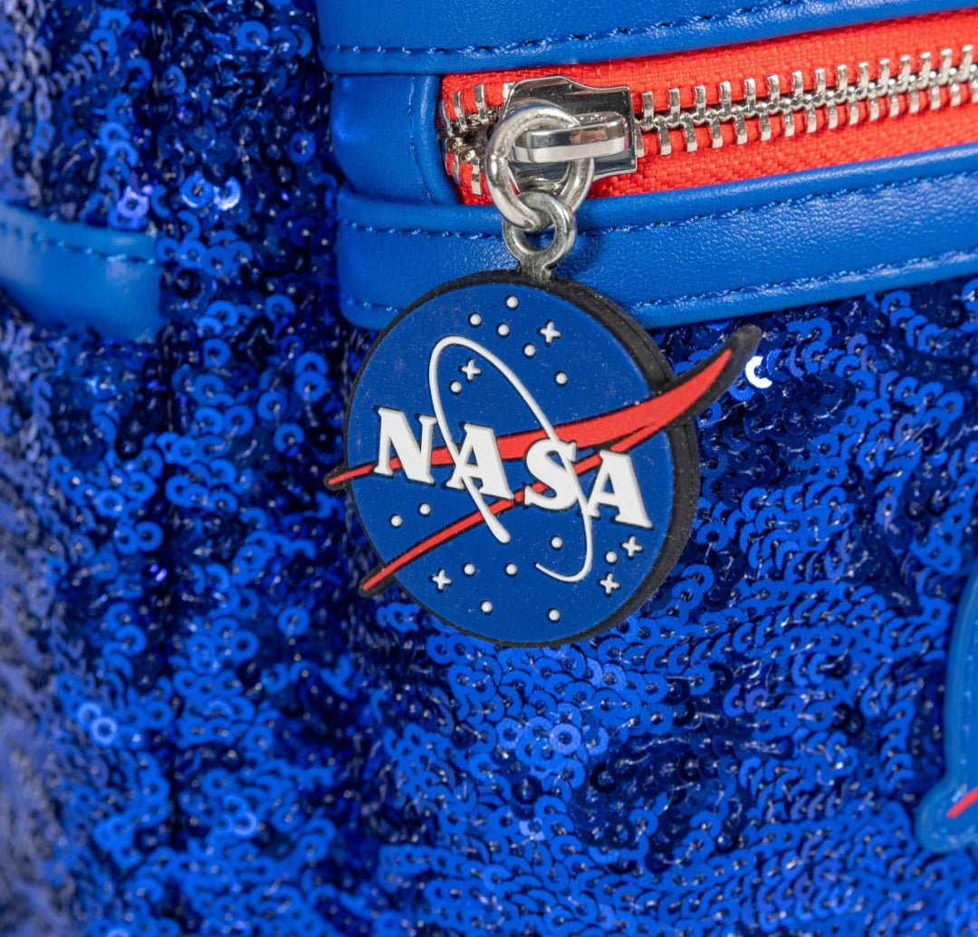 The Kennedy Space Center NASA Sequin Mini Backpack features a unique design that reflects the essence of space exploration. Its vibrant sequins not only enhance visual appeal but also contribute to durability. This mini backpack is ideal for carrying essentials while making a statement about your interest in aerospace and science.
