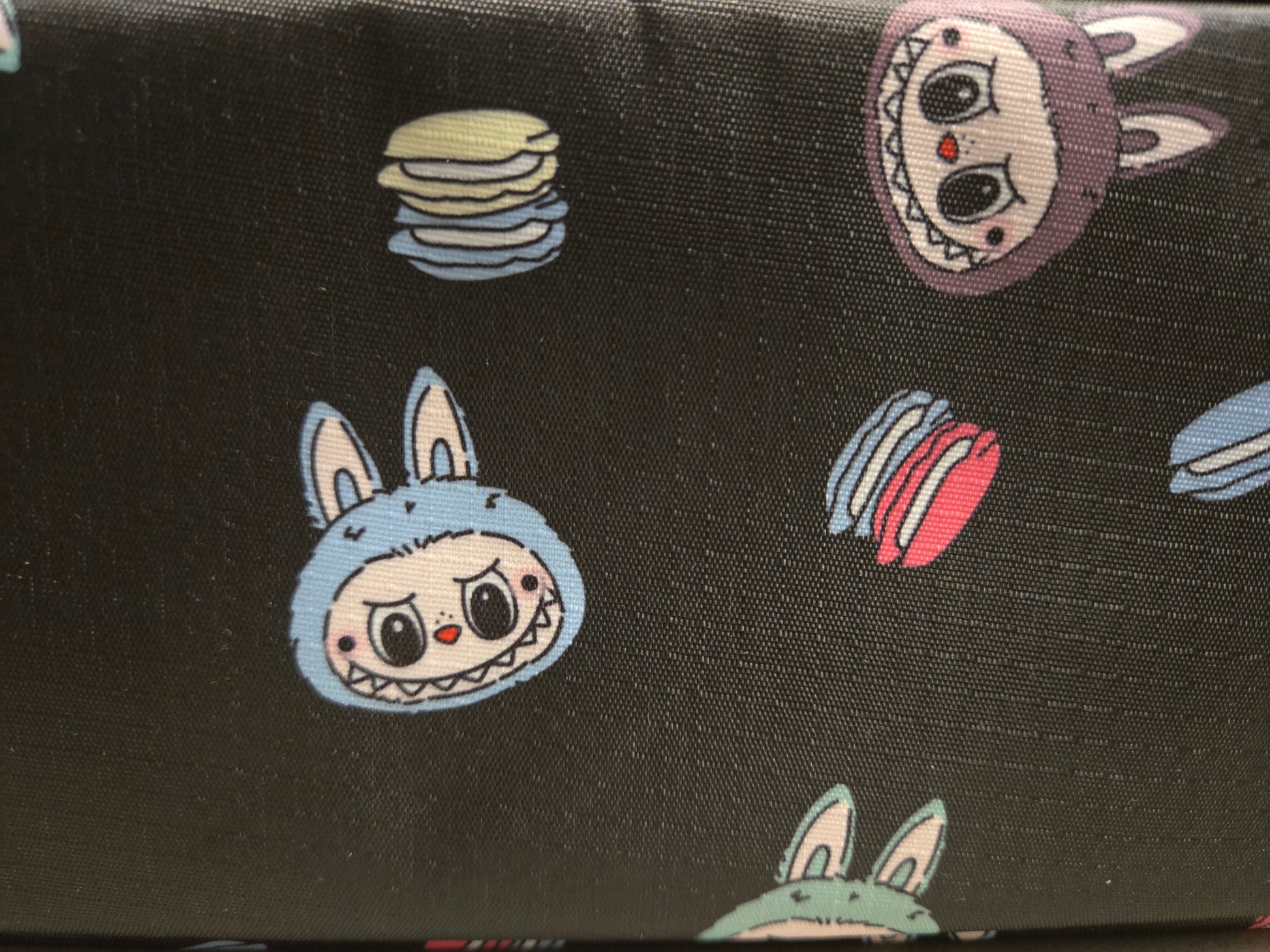 Nylon cosmetic Labubu bag...not to be confused with Lafufu. 9 teeth on these little monsters.
