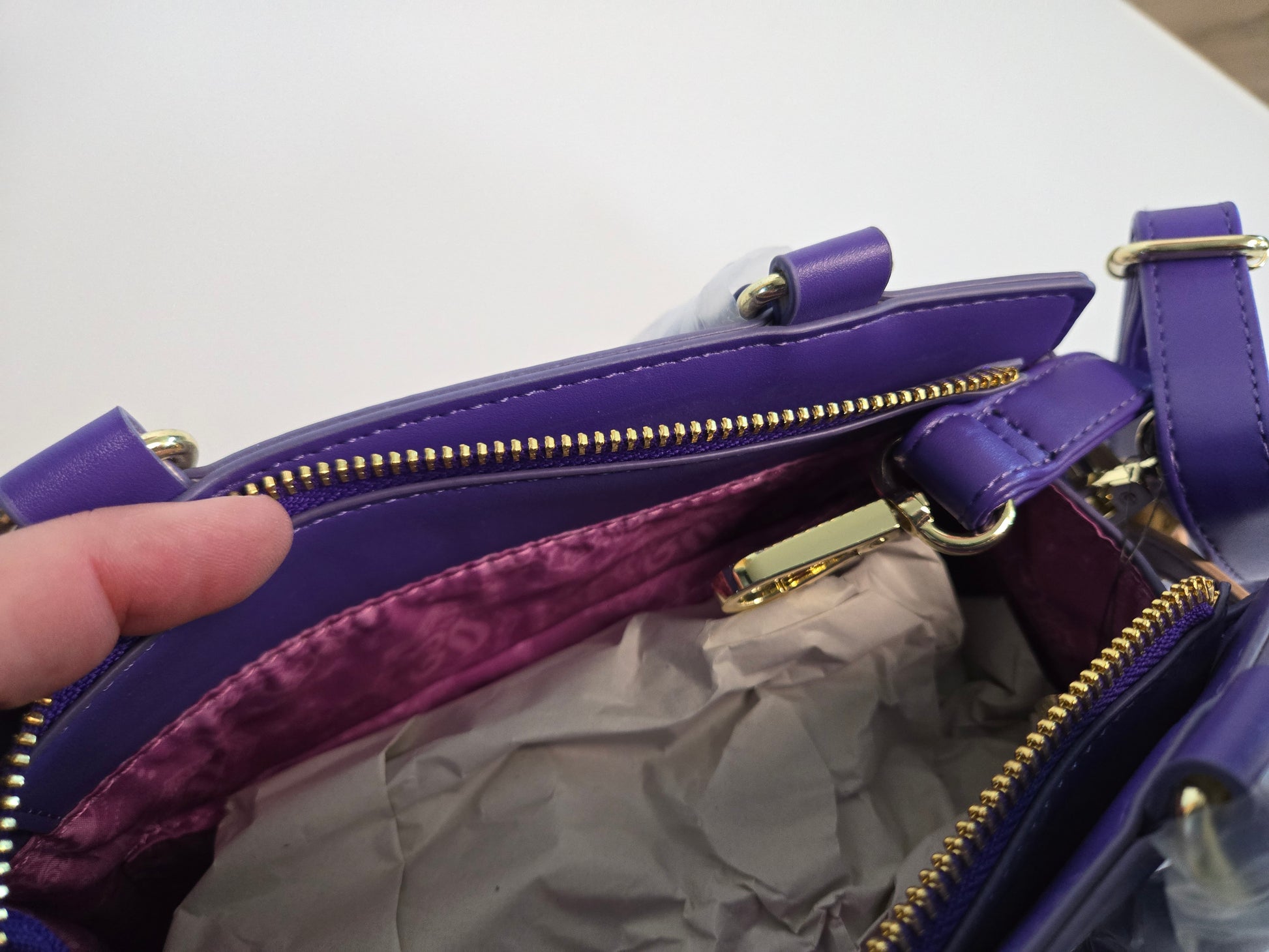 Jasmine crossbody with gold bows, Princess Edition. Stunning deep purple. Perfect sized handbag.