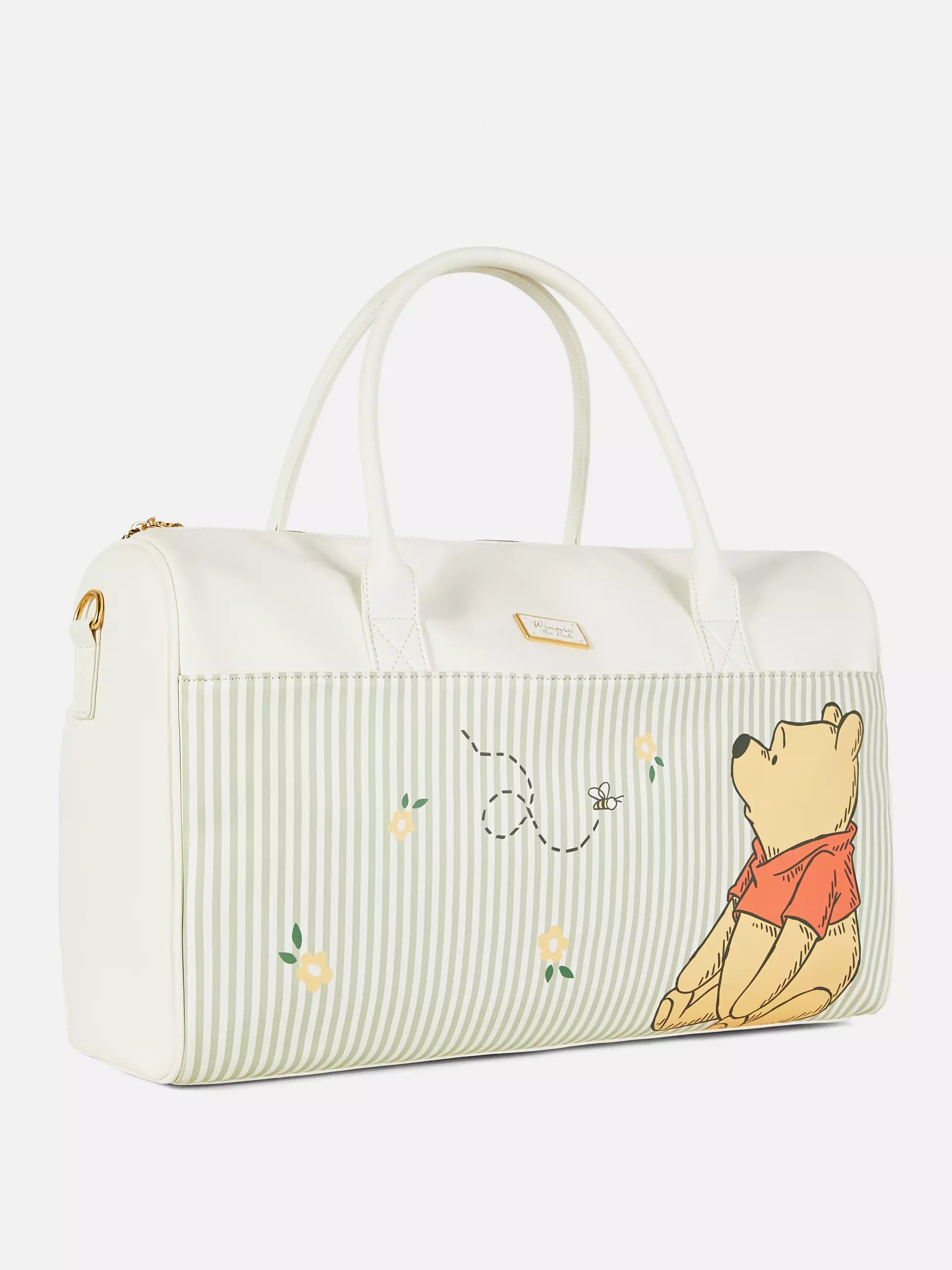 Carry your adventures in style with the Primark Winnie the Pooh Light Green Weekender. Featuring ultra-soft fabric with charming olive stripes on a creamy base, this duffle bag brings a cozy, playful vibe to your travels. Spacious and comfy, it’s perfect for weekend getaways or everyday fun.