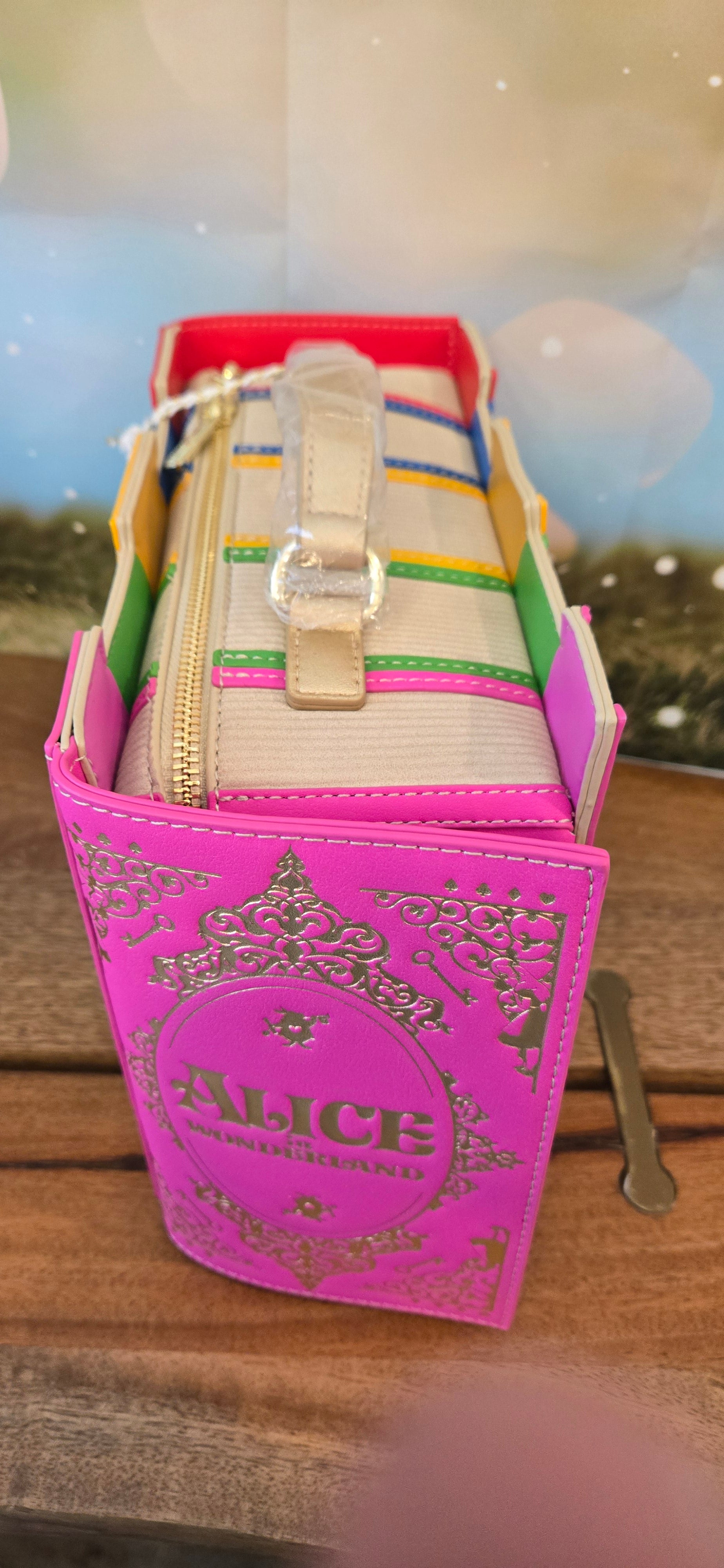 Introducing the Stitch Shoppe Disney Classic Books Crossbody, a rare treasure that transcends mere accessories. This exquisite piece, featuring beloved characters from Dumbo, Pinocchio, Bambi, Peter Pan, and Alice in Wonderland, is a nostalgic homage to timeless tales. Its retired status enhances its allure, making it a sought-after addition to any discerning collection. Embrace the elegance of literary whimsy and carry a piece of artistry that evokes memories and inspires dreams.