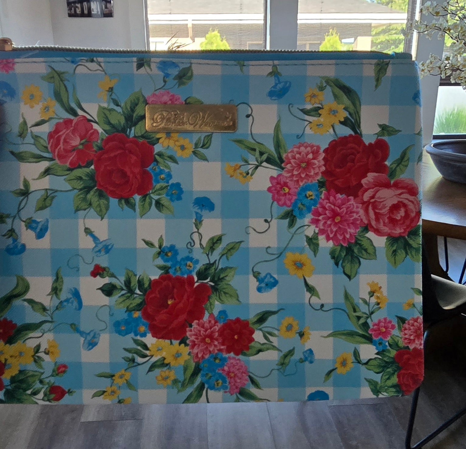 The Prioneer Woman Blue Rose Gingham Cosmetic Bag