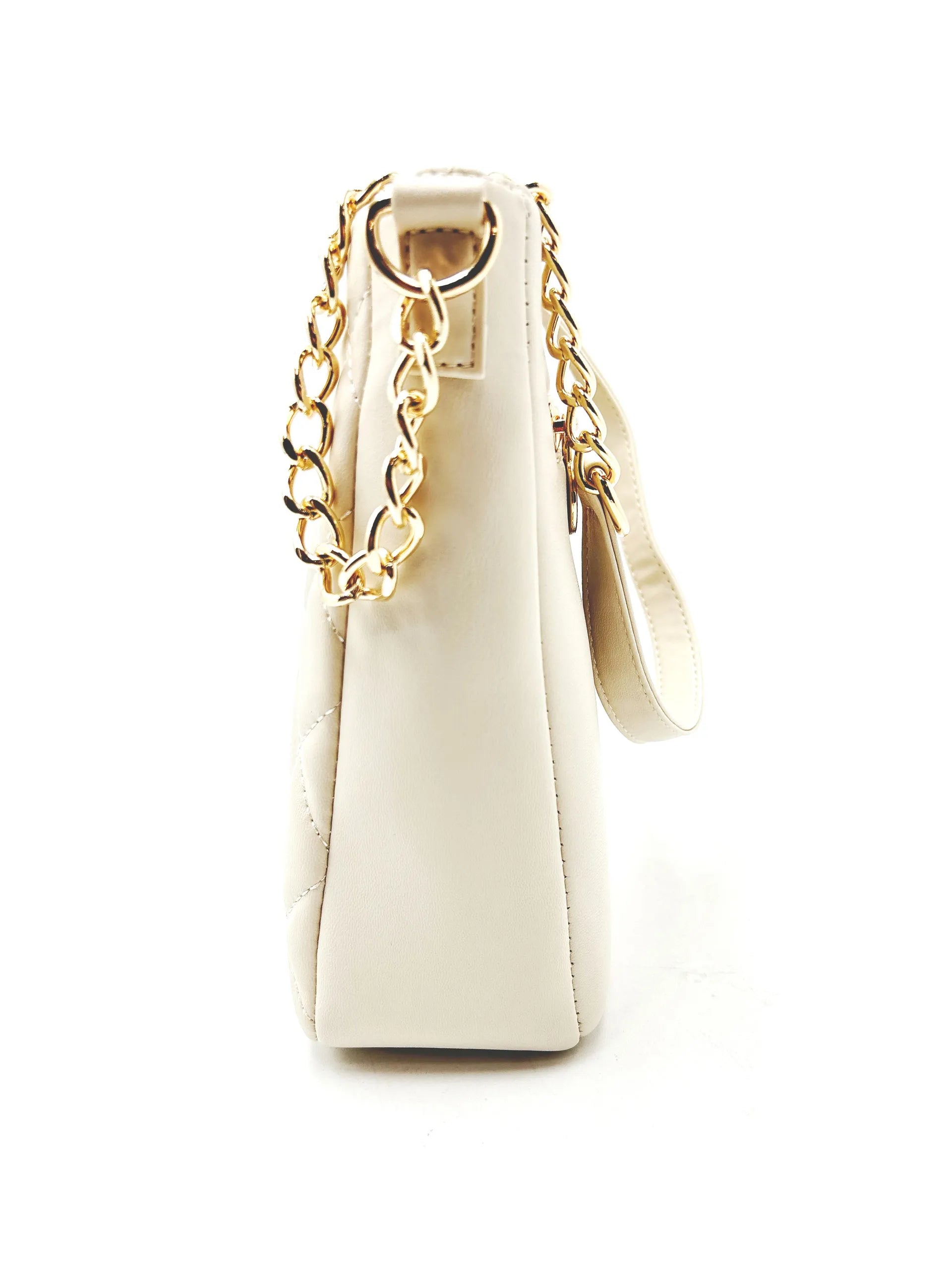Buttery soft Italian leather shoulder bag. Quilted pattern on the front with gold hardware and a cell phone zipper in the back.